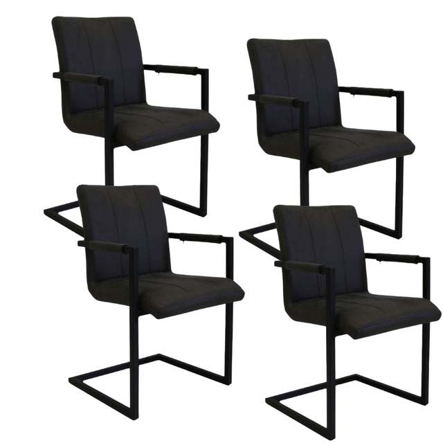 Looking for a comfortable industrial dining chair with armrests for hours of dining? The industrial dining chair Jackson in anthracite is such a chair! The vertical stitching adds a special detail to the industrial chair.
