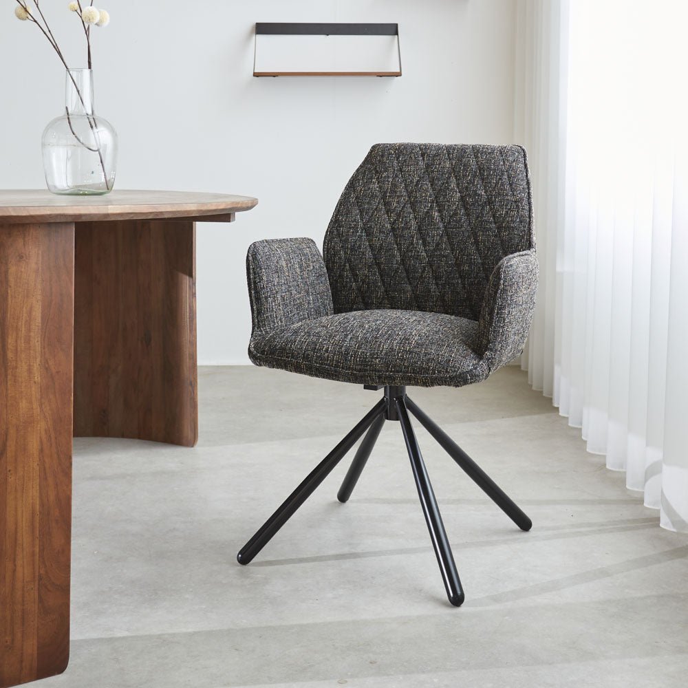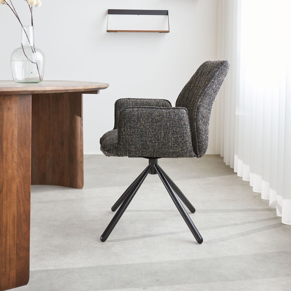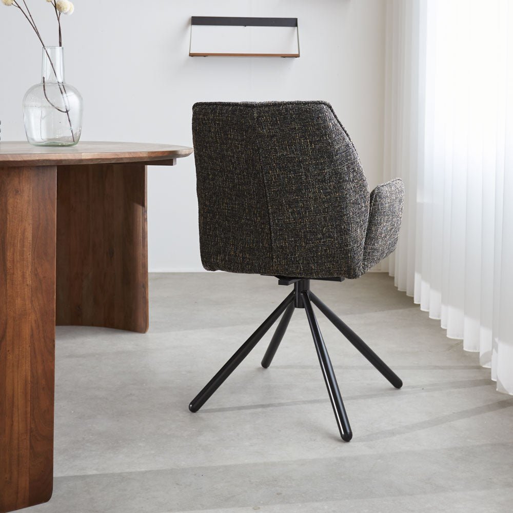 Swivel Dining Chair Black Novan Chenille - 180° Swivel
