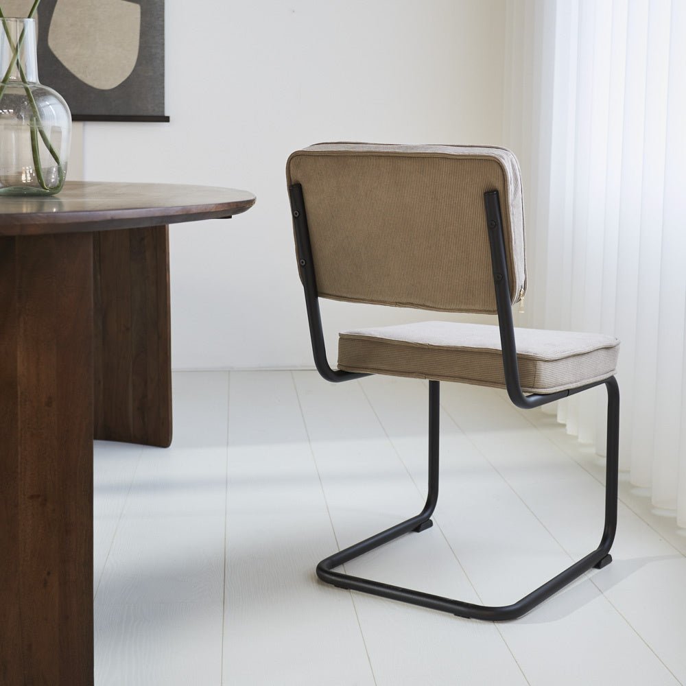 Dining chair Remo is perfect for your dining room. The combination of the metal frame with the ribbed fabric makes this chair fit into almost any interior! The ribbed fabric feels very soft and comfortable. Since the chair has no armrests, it takes up little space. Therefore, the chair is also great for placing in a smaller dining room. This dining chair is best suited for a round dining table.