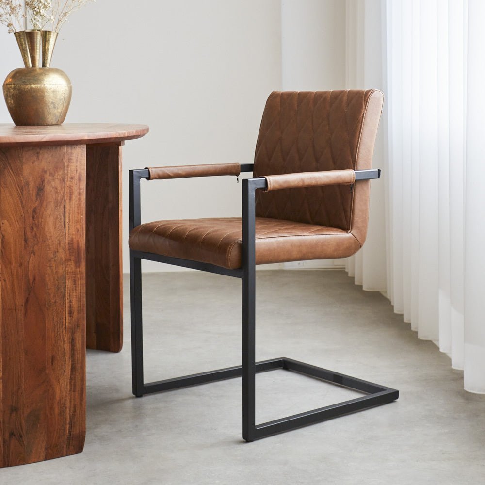 Industrial Dining Chair Cognac Ruben - With Armrests