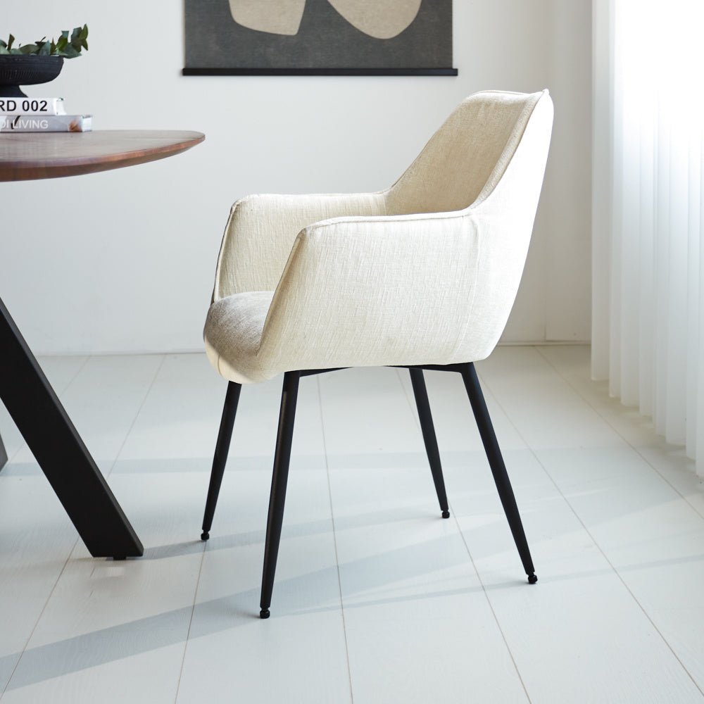 Dining Chair Chenille Cream Fabric Sev - With Armrest