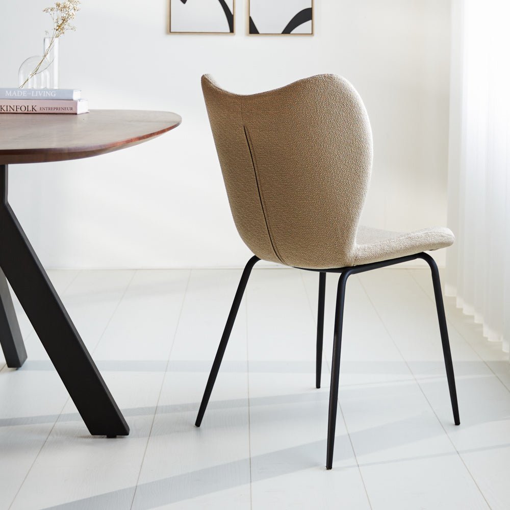 The dining chair Sia immediately stands out in your interior due to its modern design and beautiful bouclé fabric. A real eye-catcher. The combination of the bouclé fabric with the black metal base gives your dining room a stylish appearance.