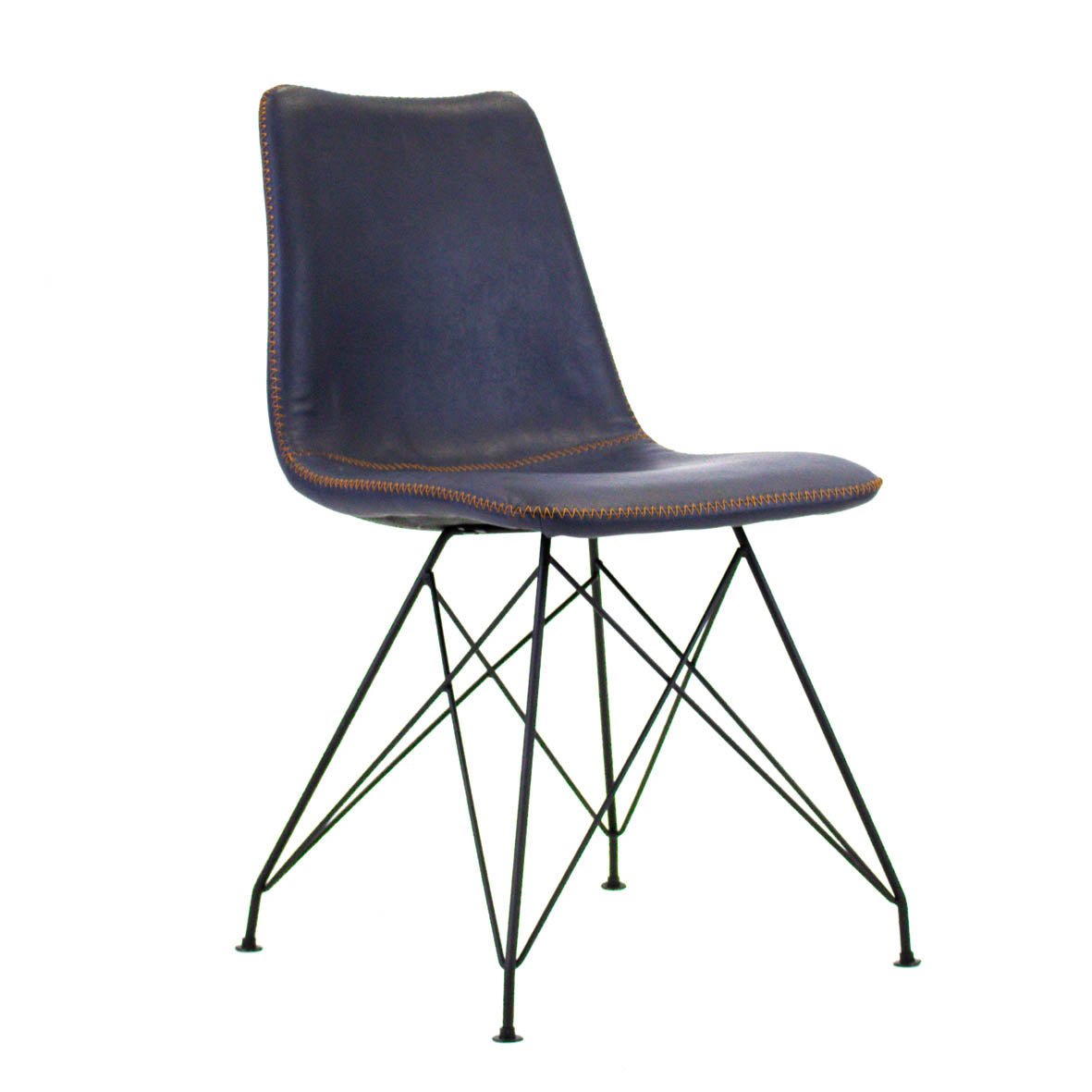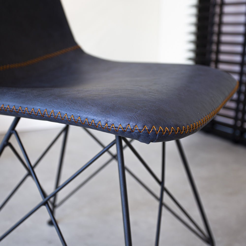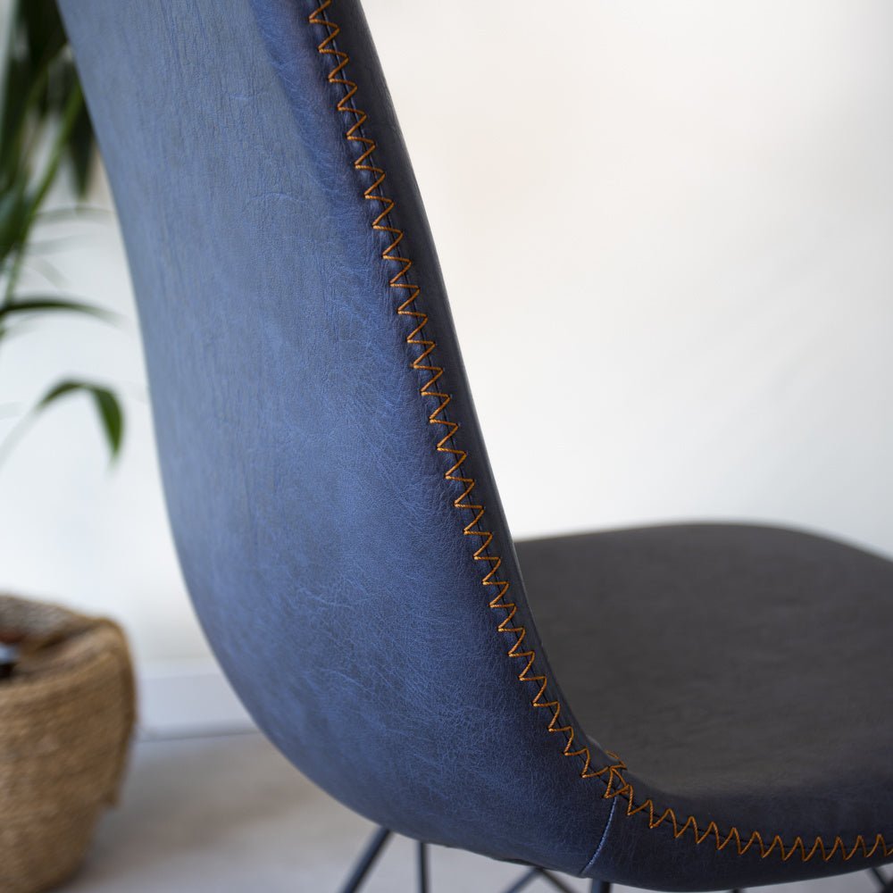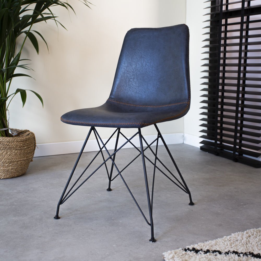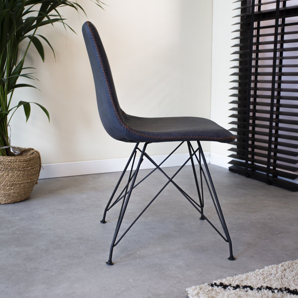 Industrial dining chair Viano blue is a super strong and sturdy model! You can sit on these bucket chairs for hours and enjoy dining with the whole family. The industrial dining chair Viano has a beautiful black powder-coated frame with faux leather upholstery featuring striking stitching.
