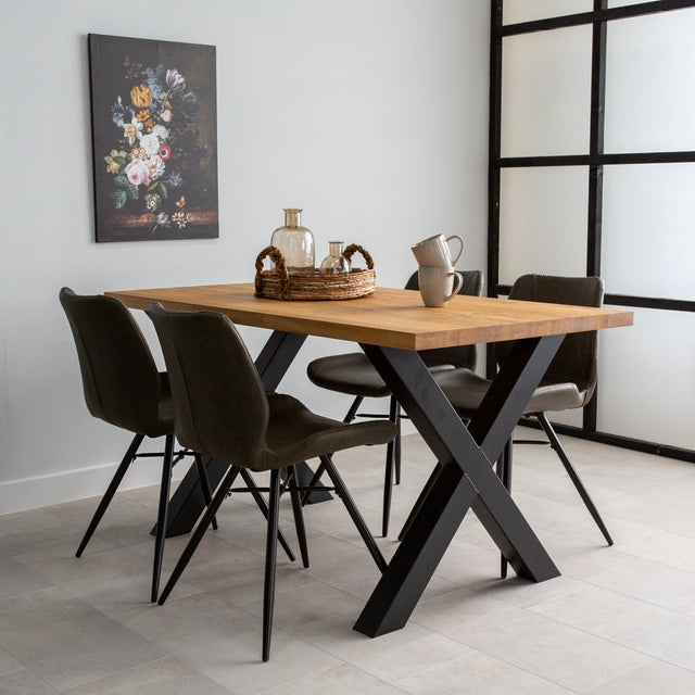 Industrial Dining Table Oak X-leg Black Rover