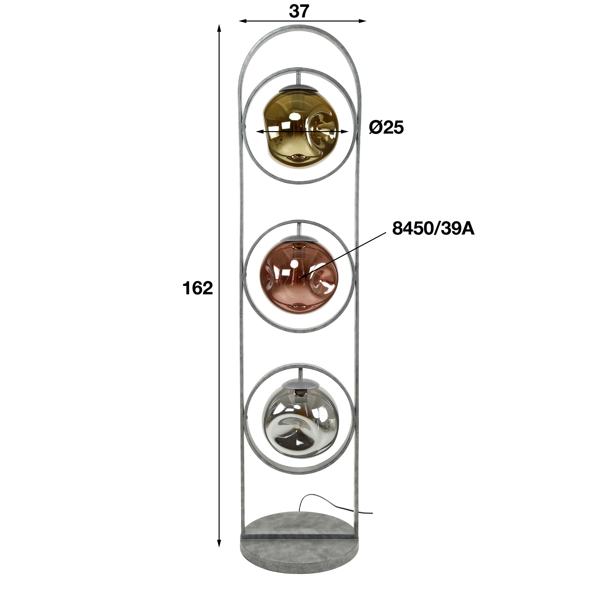 Description and specifications of Industrial floor lamp Ada colored glass 3-lights
