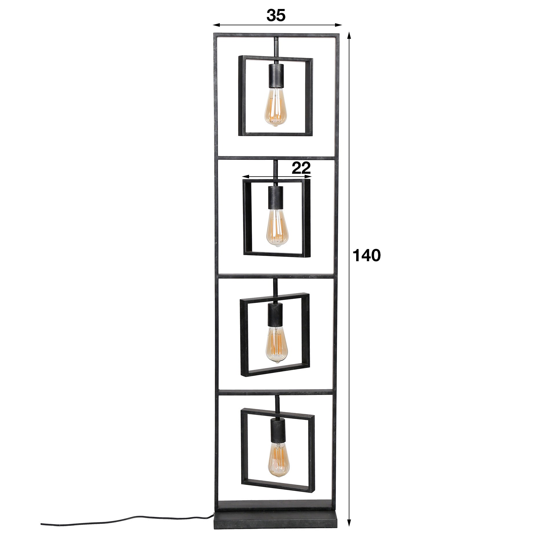 The industrial floor lamp Kody is a real eye-catcher and ensures atmospheric lighting in your living space with the four light points! The outer squares are stuck together from the lower to the upper. The inner squares can turn completely around, so that they can be placed in the desired way. This floor lamp Kody can be placed in any interior style thanks to the design and use of materials.