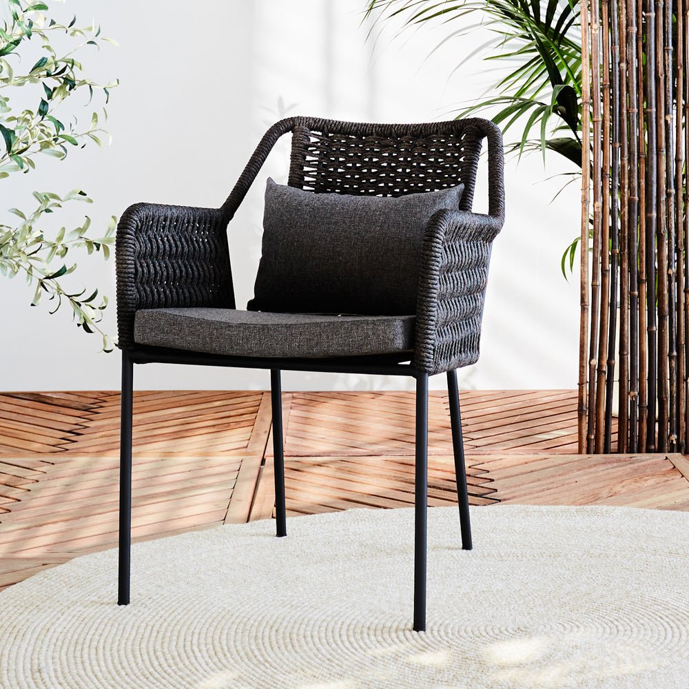 Dining Garden Chair with Armrests and Cushions Kaya Rope