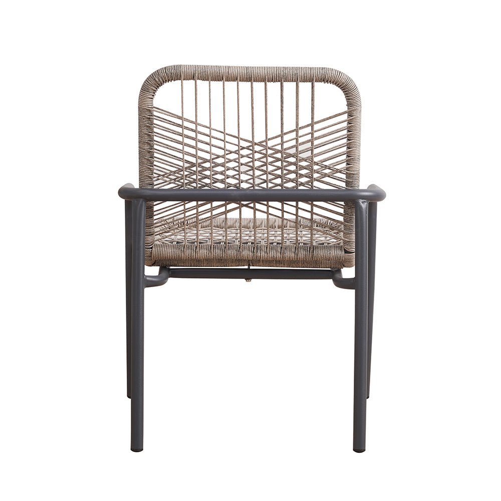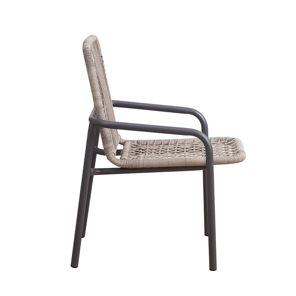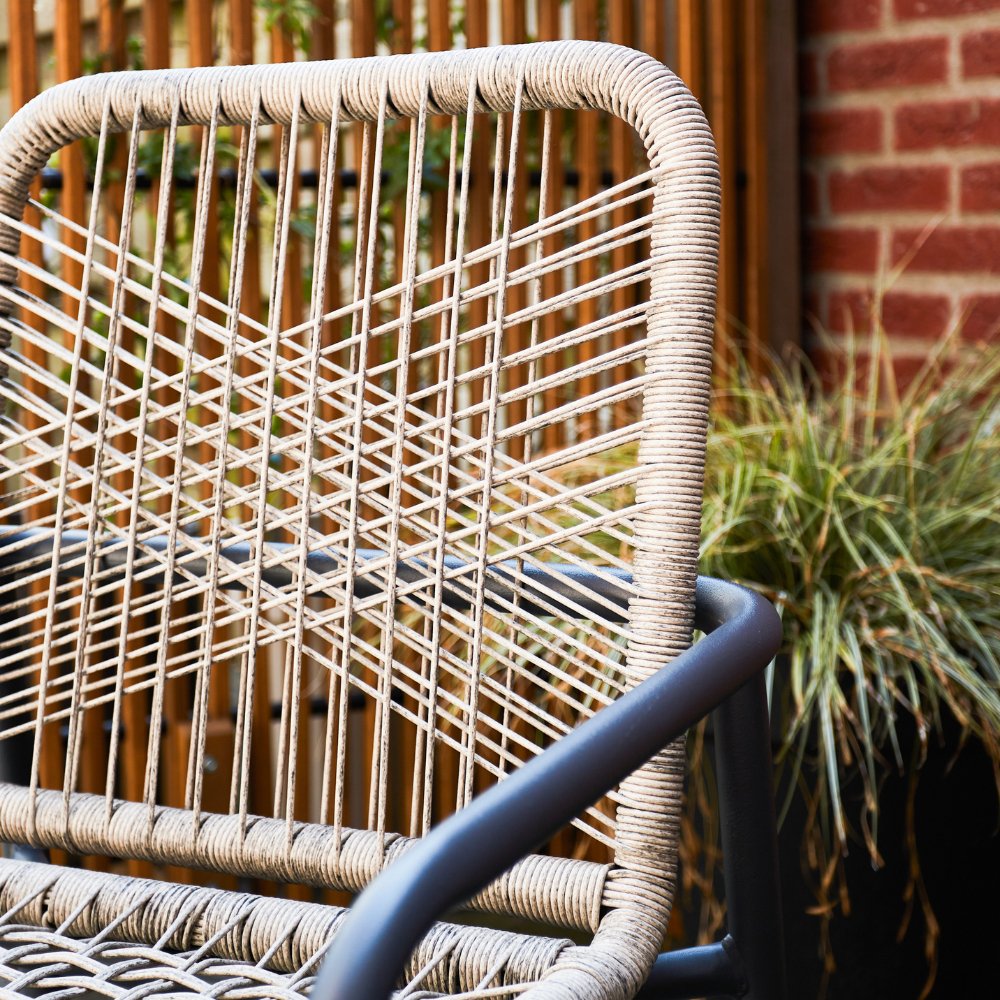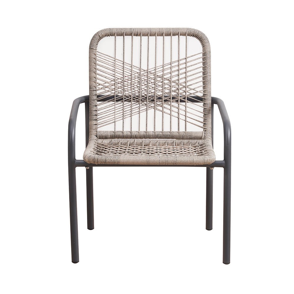 This garden chair is made of anthracite metal combined with polyester. The rope is woven around the backrest and seat, giving it a stylish look. The advantage of polyester rope is that it is ideal for outdoor chairs. The rope will dry quickly after a rain shower. Maintenance