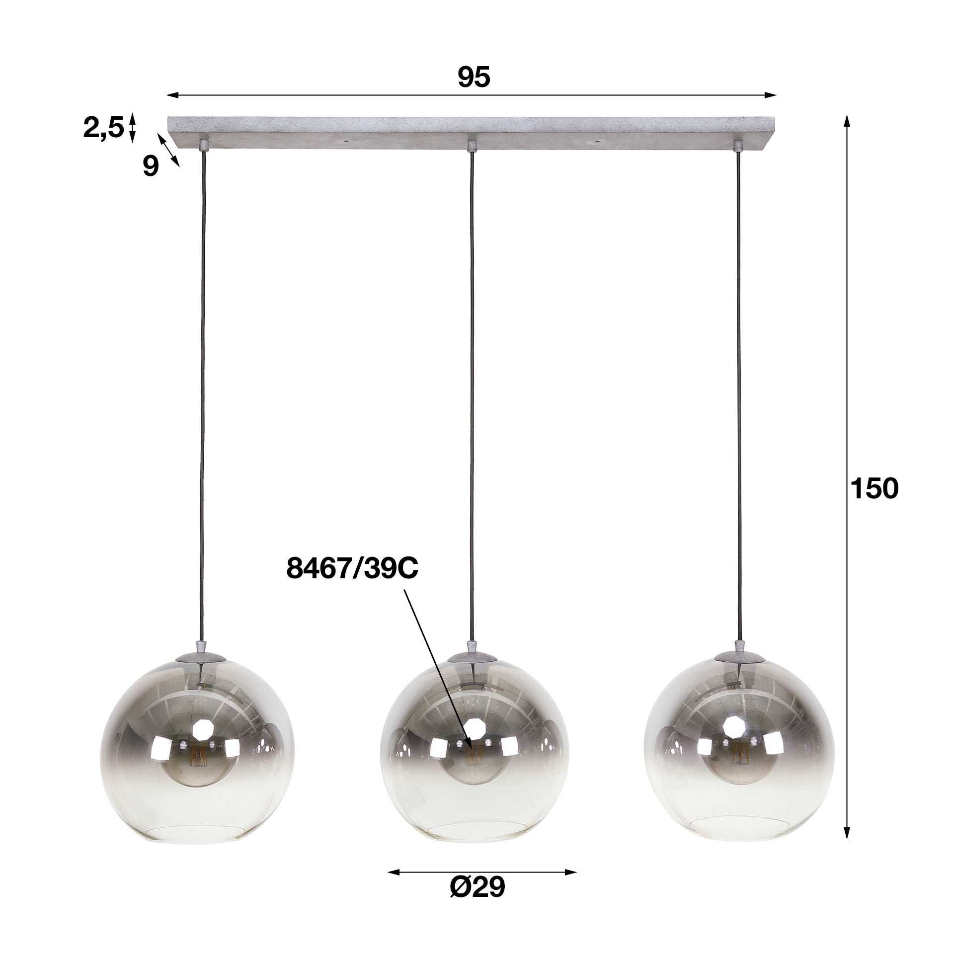 Description and specifications of Juliette glass pendant lamp 3-light smoky glass