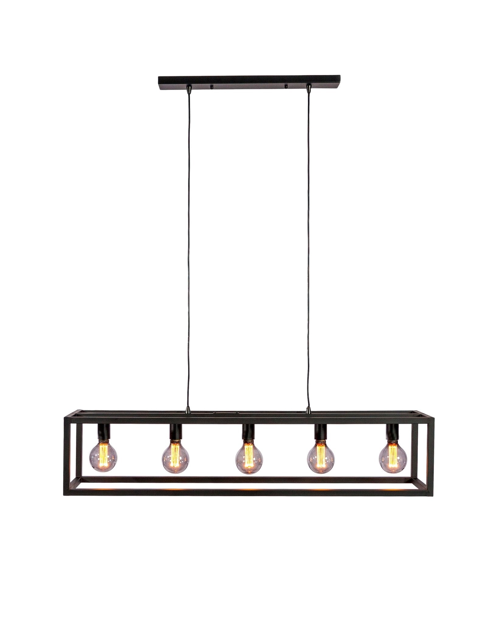 Industrial hanging lamp Tibor 5-light black is a hanging lamp that you don't want to miss in your interior. The open design of the lamp gives you a playful and atmospheric whole in the room. Tip! Use clear LED light sources. This makes everything look even more spatial! The lamp is adjustable in height.