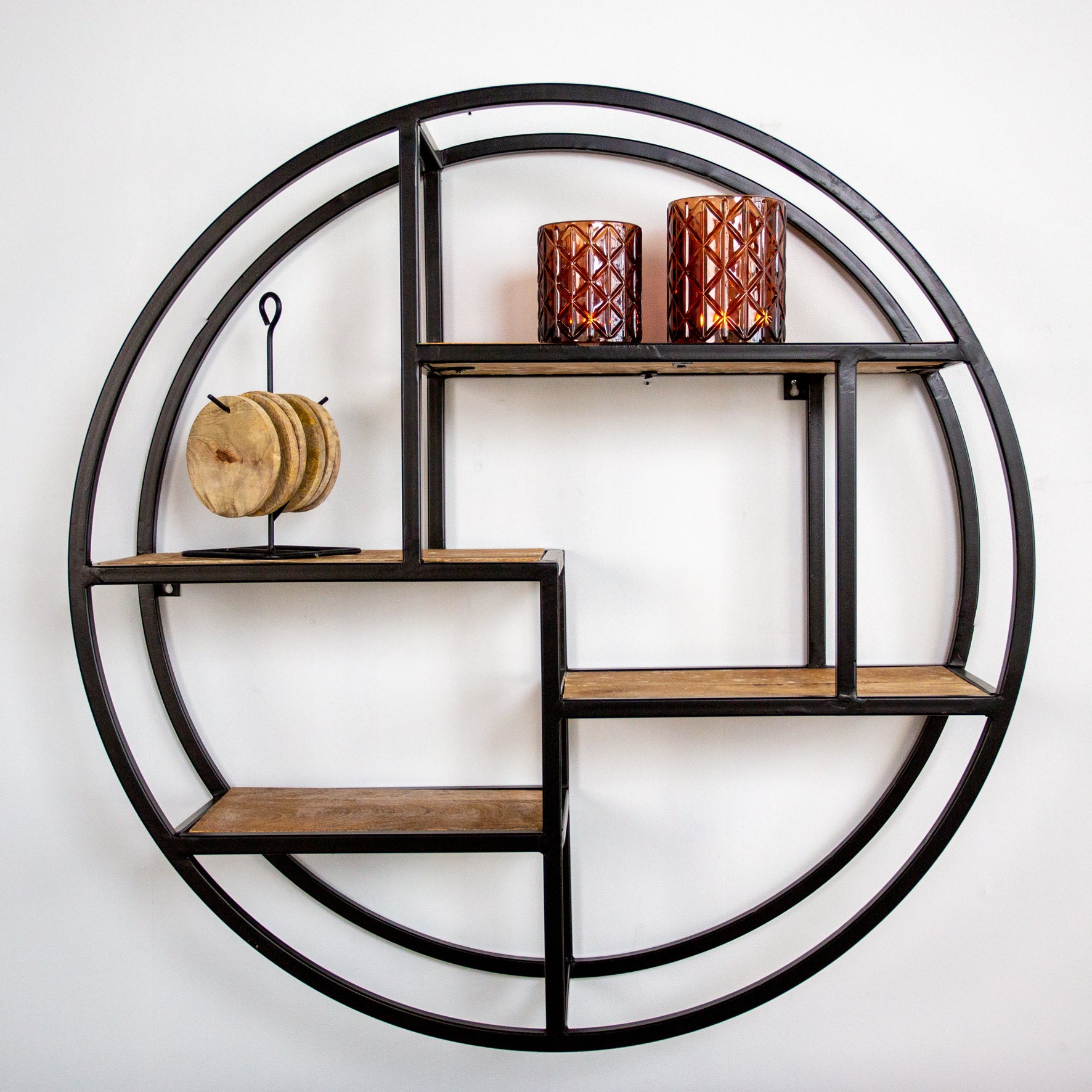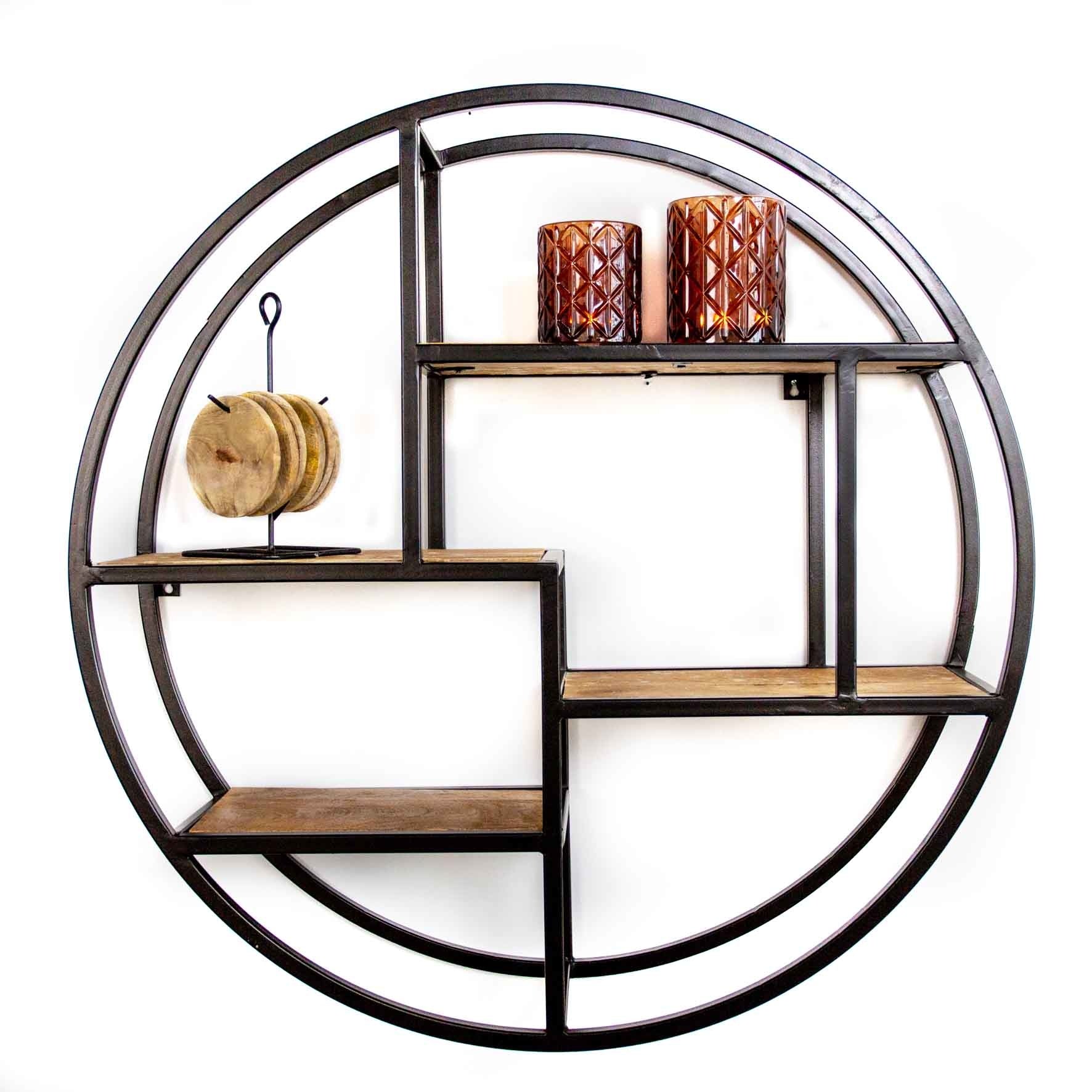 Industrial wall rack Sari Ø76 cm Mango wood metal