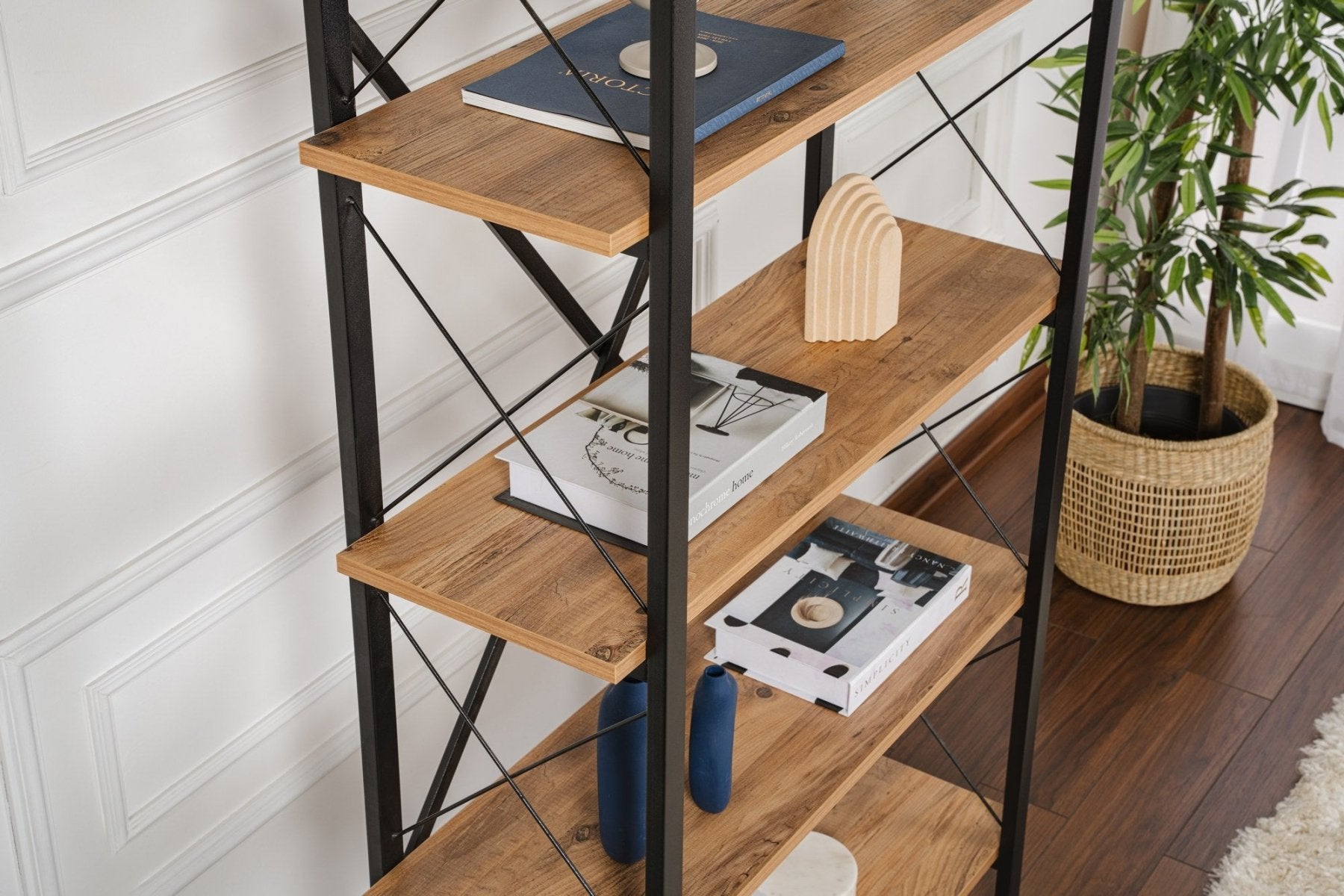 Industrial Bookcase Ely Atlantic Pinewood Melamine - Black Frame - 180x90 cm