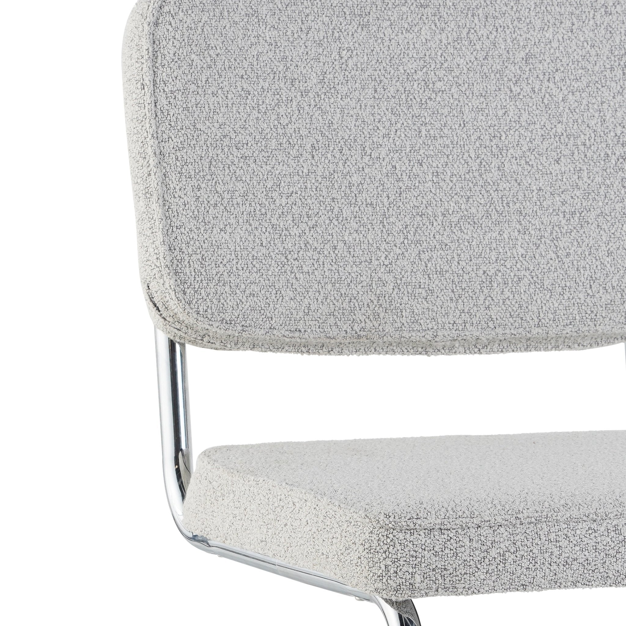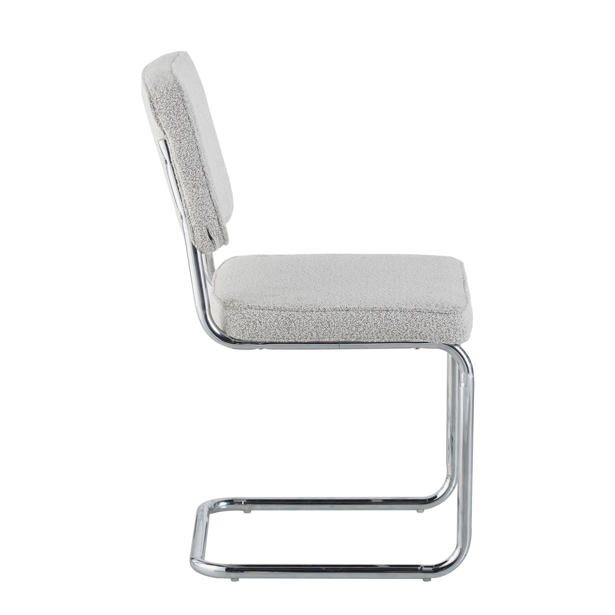 Moderne Eetkamerstoel Grijs Bouclé Stof Sway - Chrome Frame - Zonder Armleuningen