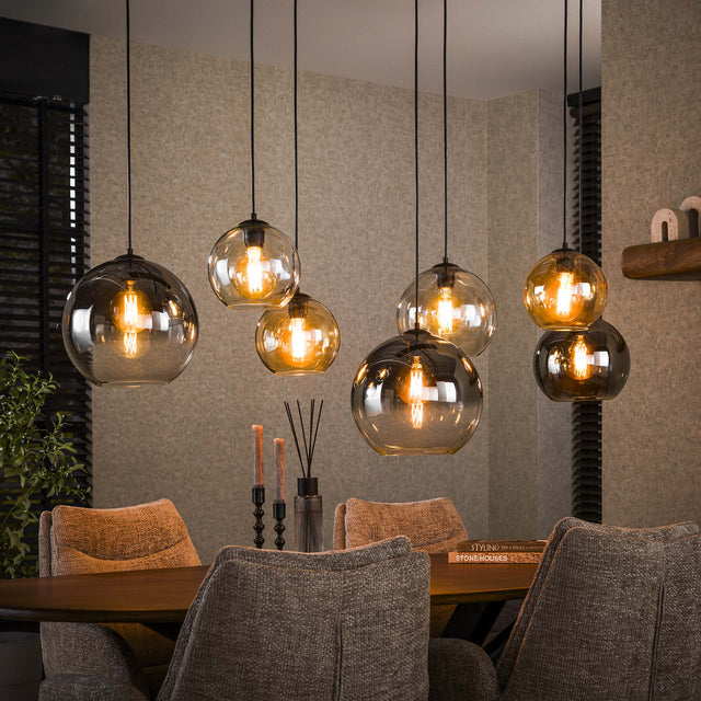 Pendant lamp Juliette is a sight to behold and fits into any interior! The pendant lamp contains no less than six or seven lamp shades, which can be individually adjusted in height up to 150 cm. Pendant lamp Juliette is easy to attach to the ceiling and provides ample light. The glass shades have a smokey glass finish and ensure that the ambient light is perfectly distributed throughout the room. The Juliette is a sturdy yet elegant pendant lamp for any space.
