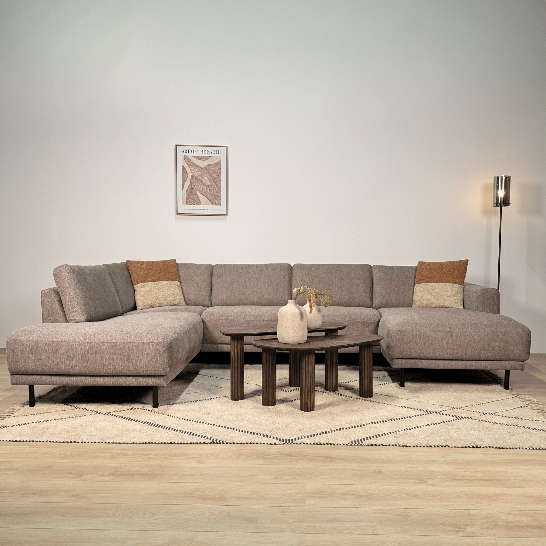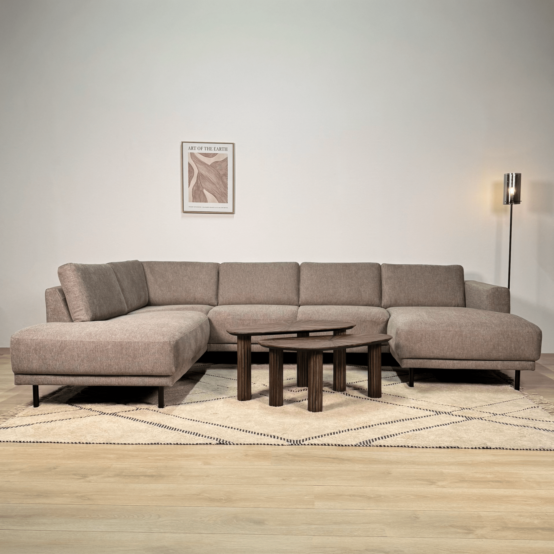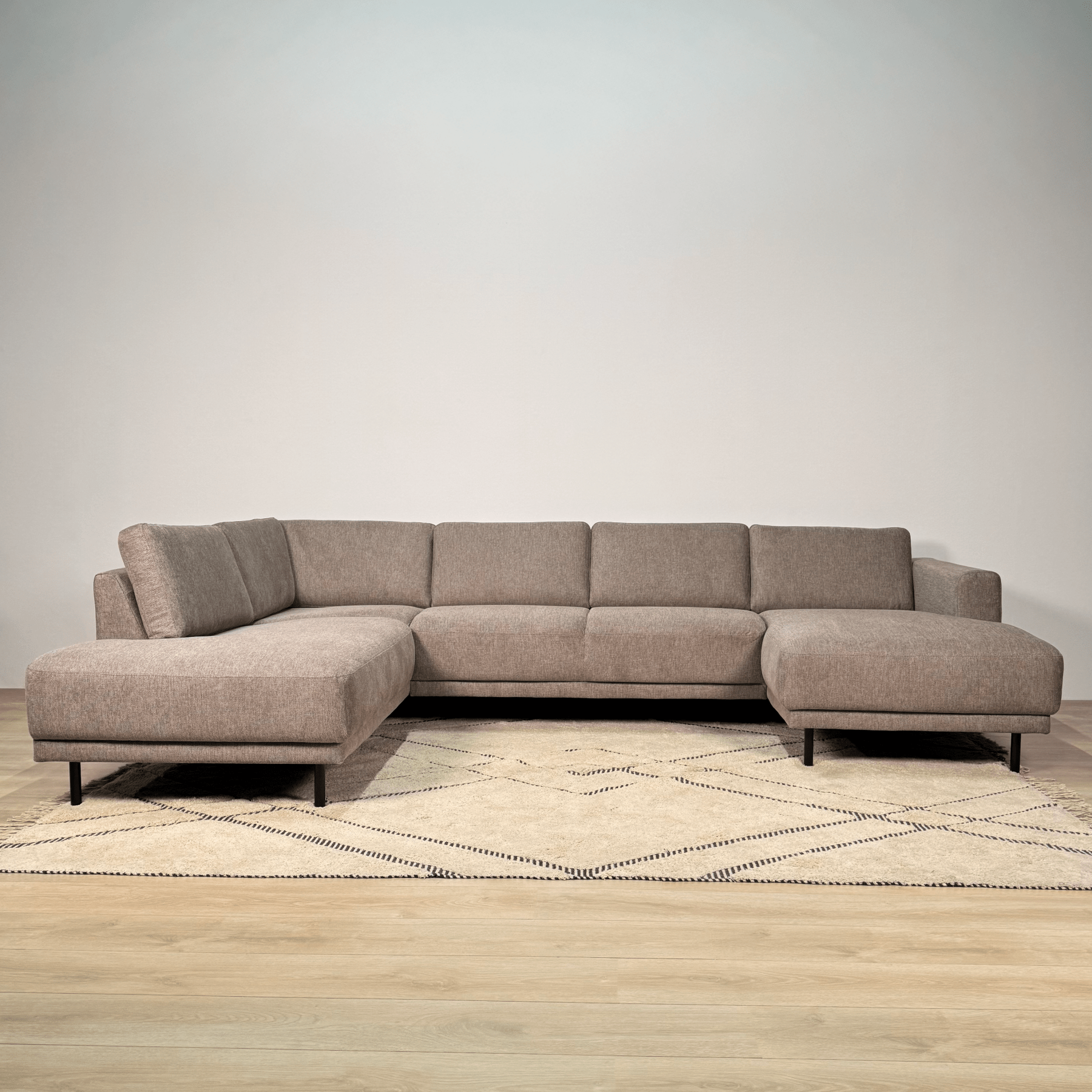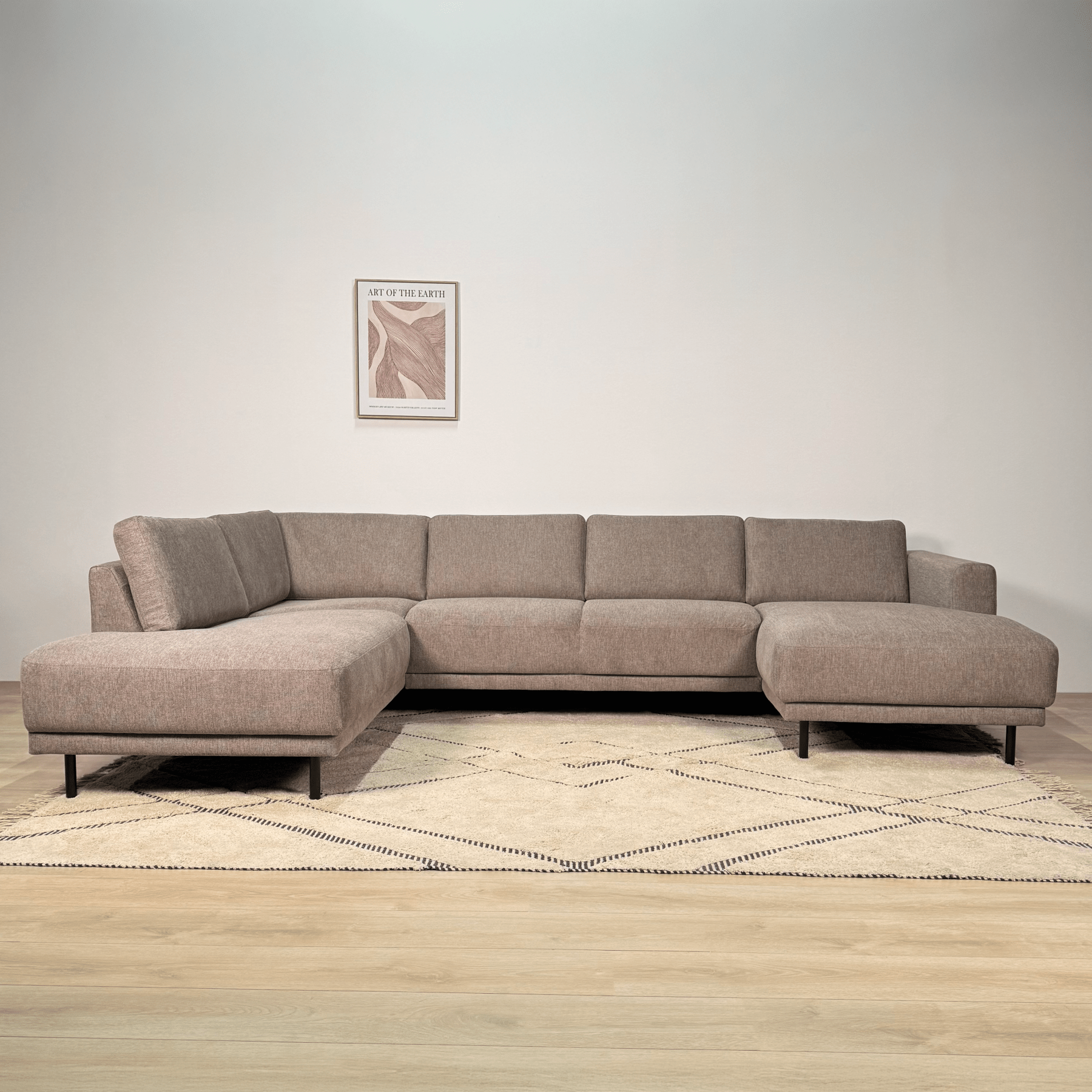 The Aniko U-shape corner sofa is the choice for those who want to combine space with style. With generous dimensions and a comfortable lounge layout, this sofa is ideal for families or for those who like to entertain guests. The sleek lines and taupe fabric make this a timeless eye-catcher in your interior.