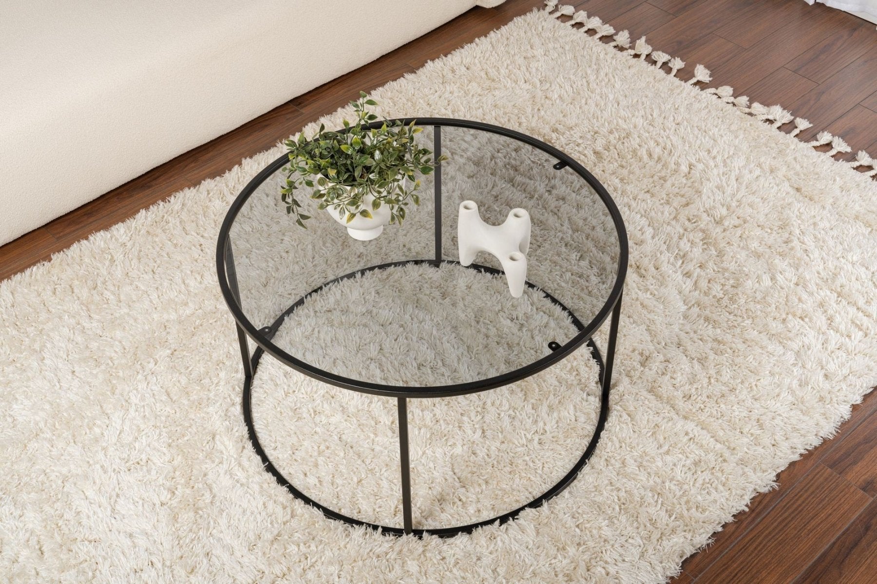 Modern Round Coffee Table Uru Black - Gray Glass - 80 cm
