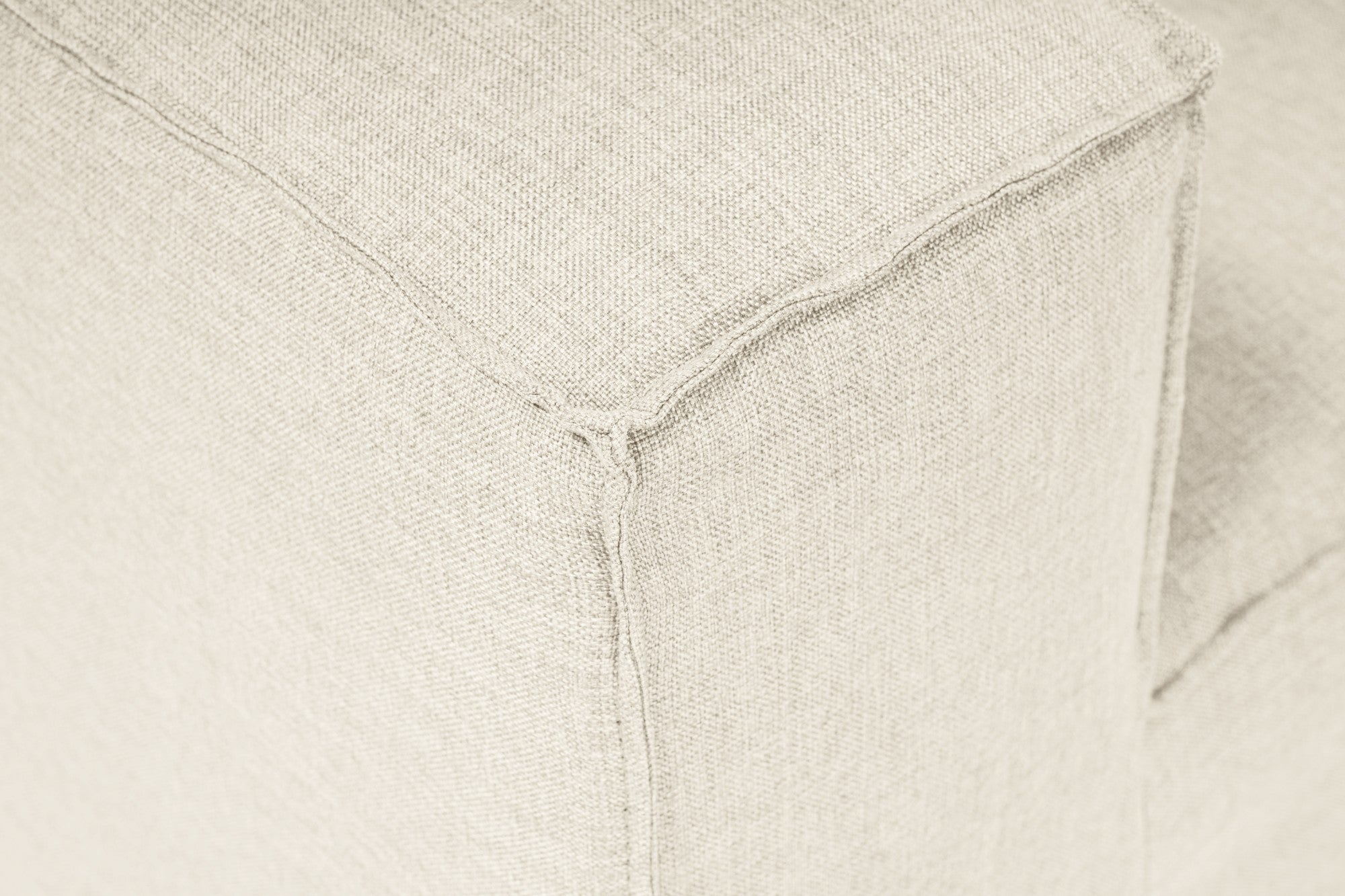 Modular corner sofa with loose pouf in ecru beige linen fabric Fora - left
