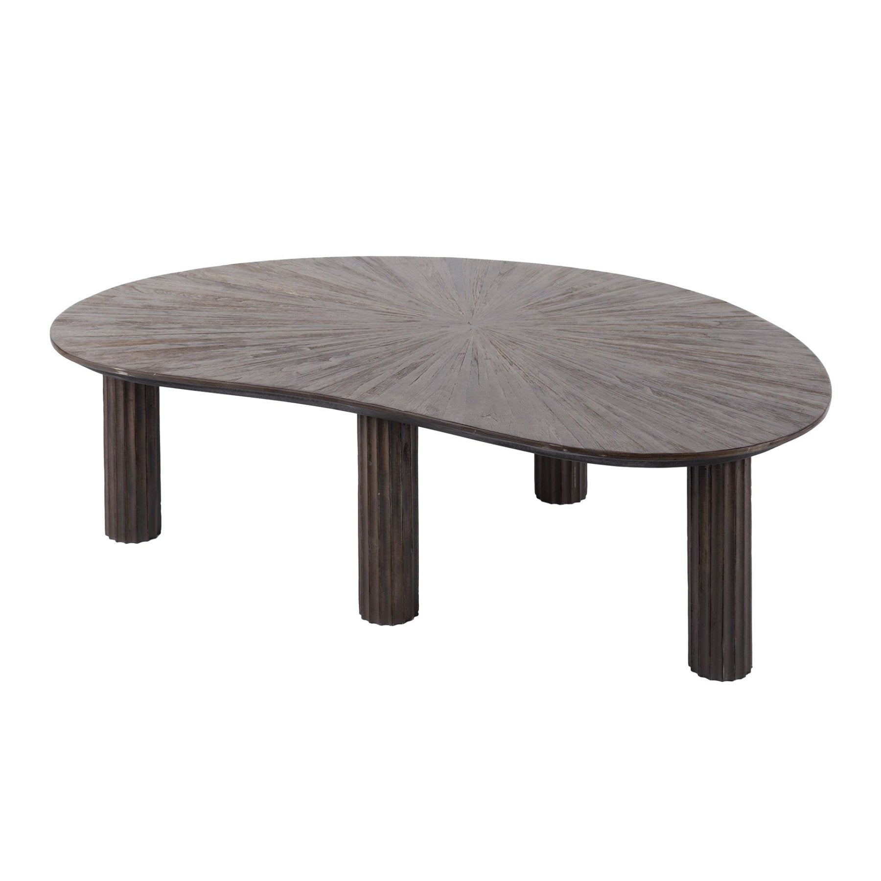 Give your interior a stylish boost with the Myla Coffee Table Organic Teak Brown 110 cm. This beautiful table is designed in an elegant kidney shape and made from high-quality teak wood, finished in a contemporary dark brown shade. The durable wood and unique design make this table a real eye-catcher.