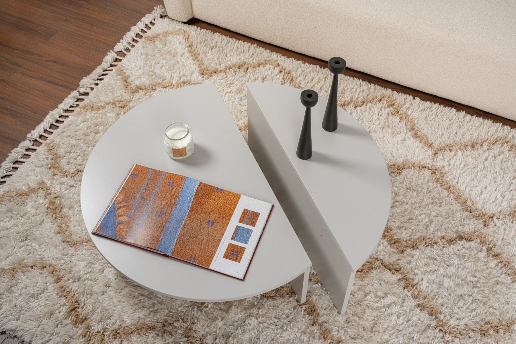 Description and specifications of Round Coffee Table Grey Tiered Melamine 90 cm Orin