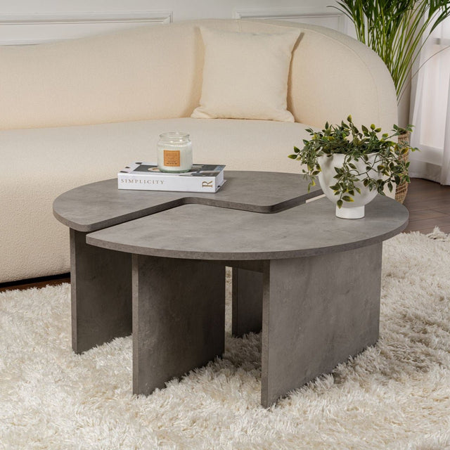 Round Coffee Table Moari Concrete Look Gray Melamine 90 cm