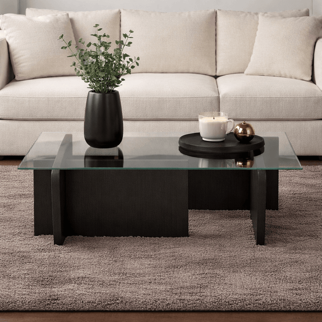 Description and specifications of Coffee Table Black Wood Melamine Glass Opal 105x65x30 cm