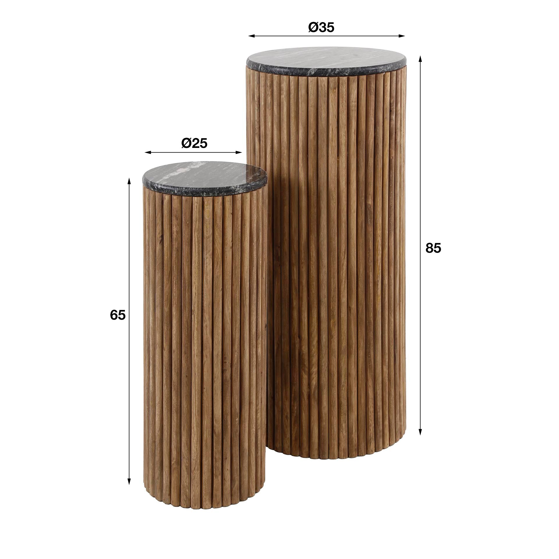 Flower columns set of 2 Louis mango wood black marble Ø35-Ø25 cm