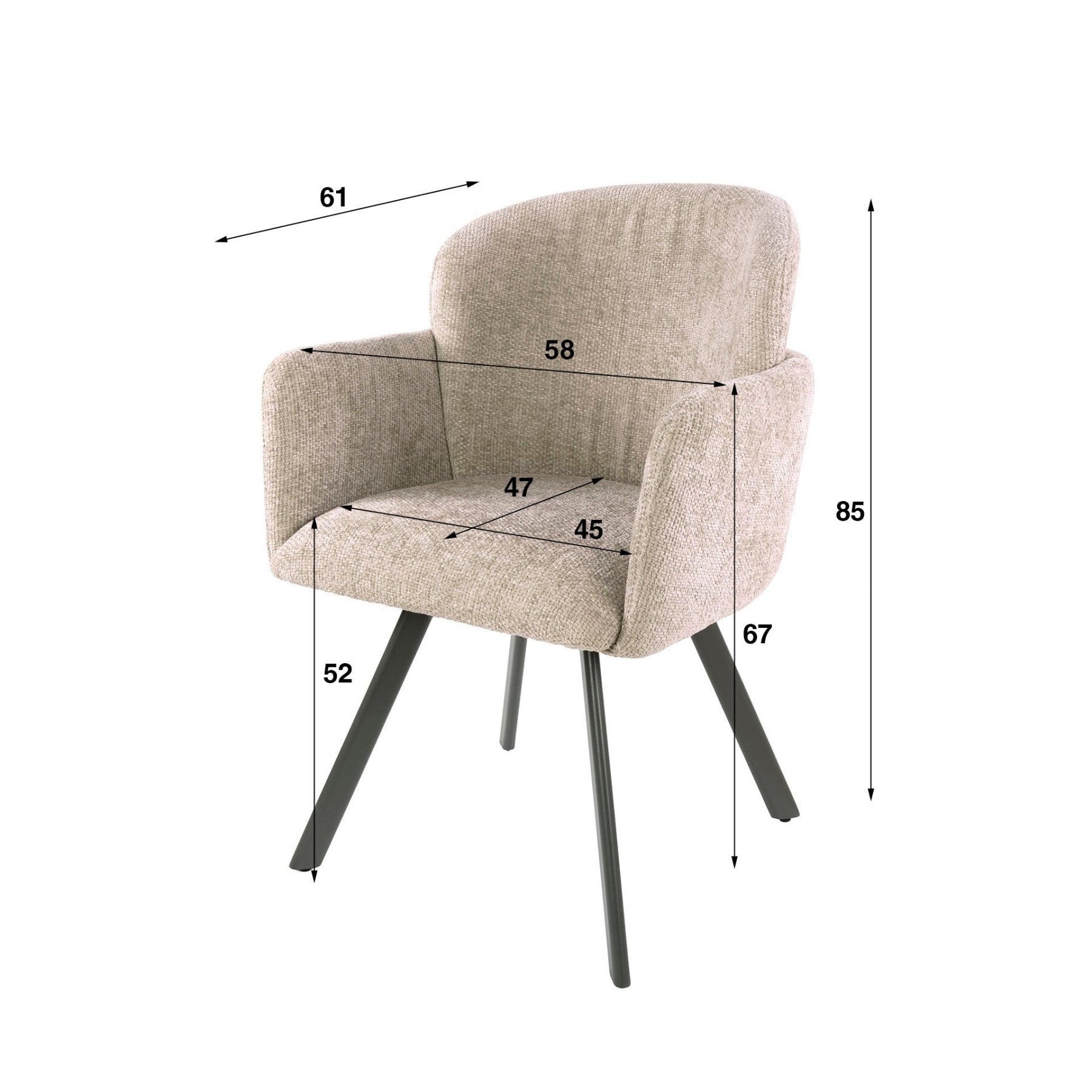 This set of 2 Luma dining chairs in Hoven rich sand combines a warm, natural color with a soft and easy-to-maintain material. The comfortable armrest and the light, modern design make these chairs suitable for daily use at the dining table but also as extra seating in the office or living room. The timeless design complements Scandinavian and modern interiors.