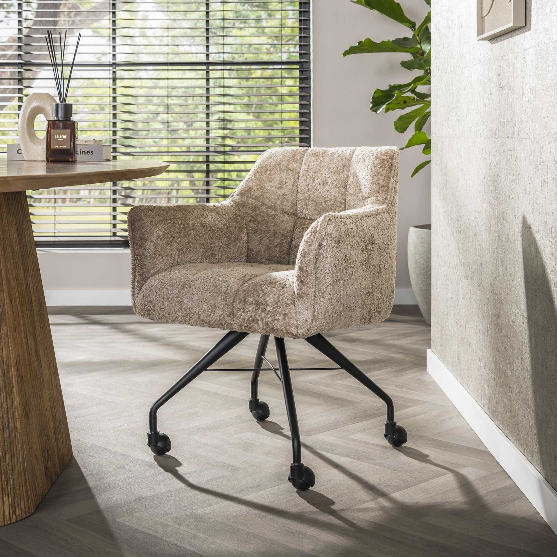 This set of 2 dining chairs combines modern simplicity and everyday comfort. The Tova Alura in sand finish is upholstered in a soft sand-colored fabric and features subtle grid lines on the seat for a fresh, timeless look. Ideal for dining rooms, workspaces, or as an extra seat for gatherings with guests. Since it is a set of two chairs, this product provides a complete solution for the table.