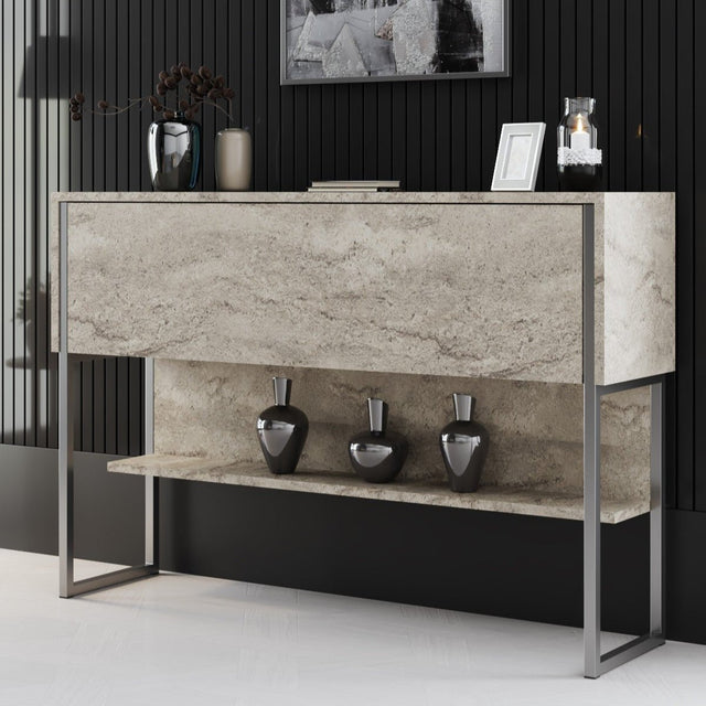 Modern Sideboard Travertine Luxury 120x80x30 - Silver Frame - One Compartment