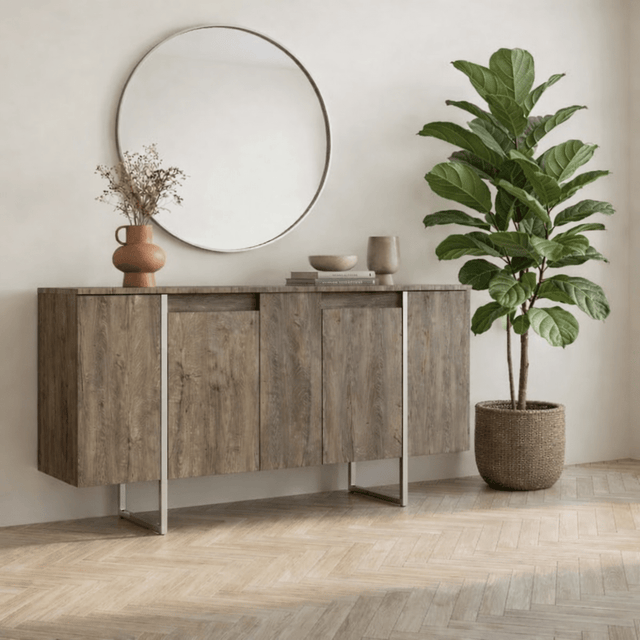 Modern Dresser Walnut Luxury 160x80x35 - Silver Frame