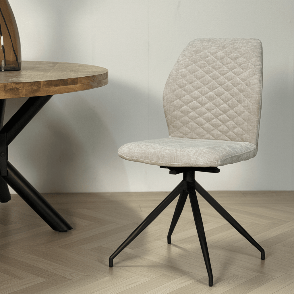 The swivel dining chair Charly gives your dining room a stylish, luxurious, and modern chic appearance. The soft yet sturdy fabric feels super soft and has a slight sheen.