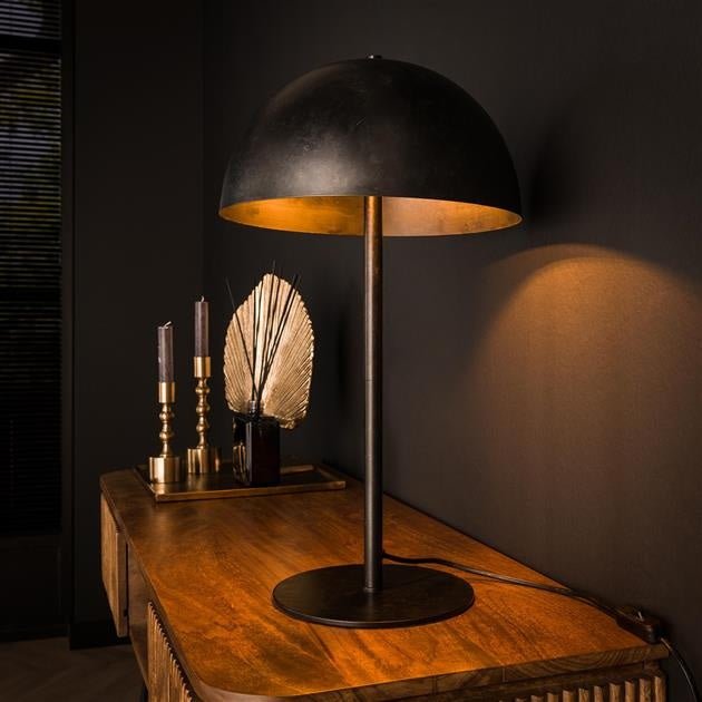 The Vera table lamp is finished with a Charcoal finish, which ensures a trendy lamp with a vintage touch. This lamp contains a round roof around the light source. This ensures that the light is distributed atmosphere by the room.