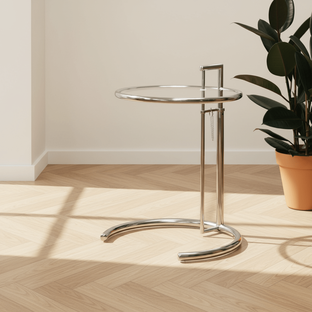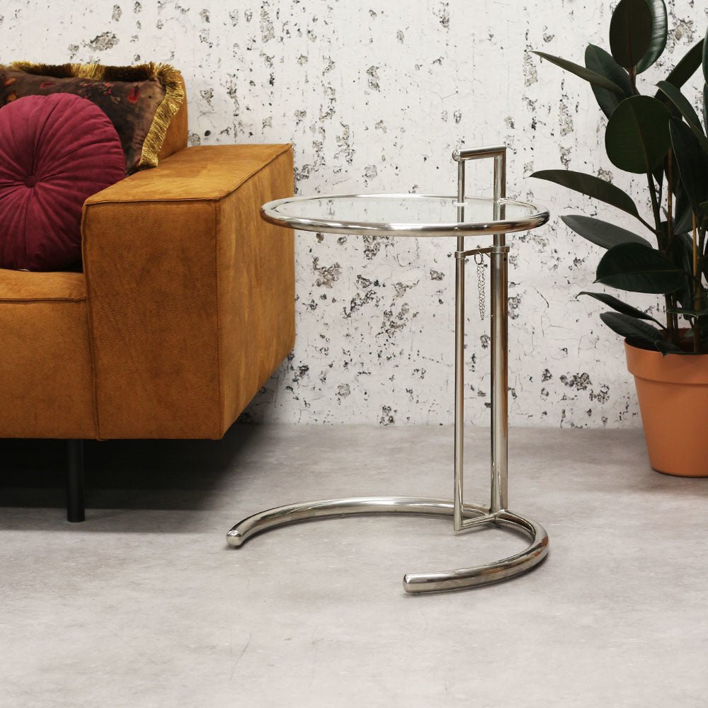 Now get a unique coffee table with the taffy. The chromed stainless steel holds the hardened glass plate in place. Because the glass is hardened, you don't have to worry that this will break.
