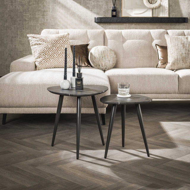 Triangular Coffee Table Set of 2 Conner Ceramic Look Gray