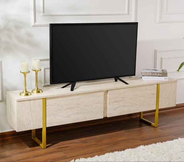 Transform your living room into a luxurious and elegant space with our beautiful travertine and gold TV stand. This TV furniture is not just a piece of furniture; it is a statement of style and sophistication.