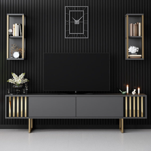 TV furniture set Gold Line Anthracite Black Melamine 180x48x30 cm