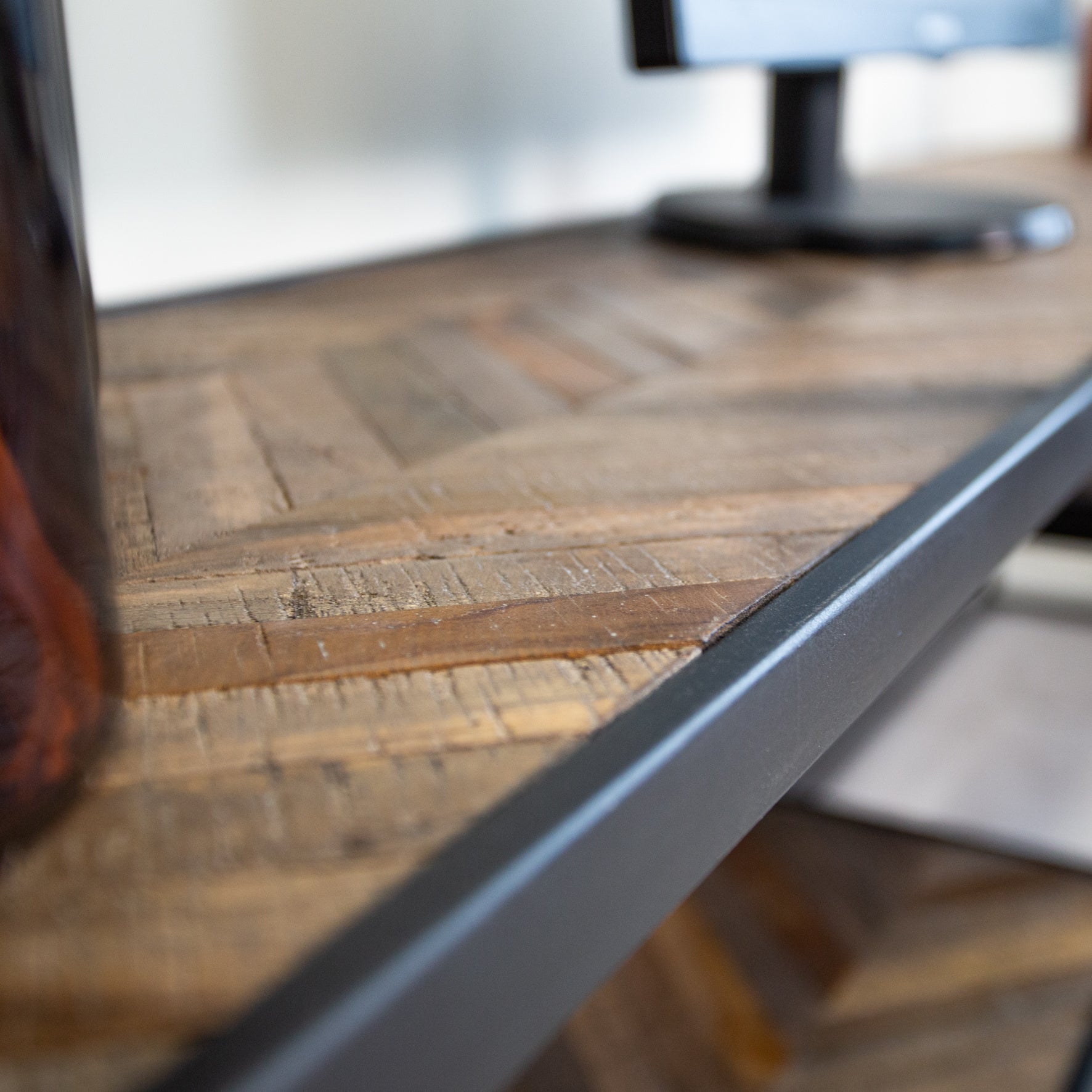 Is this not a beautiful industrial TV furniture in chic herringbone? TV furniture Sylvie completes your interior! The furniture fits perfectly in any interior thanks to the beautiful appearance; Industrial, cool and chic! In addition, TV furniture Sylvie offers sufficient storage space for your television box, magazines and accessories thanks to the shelves.