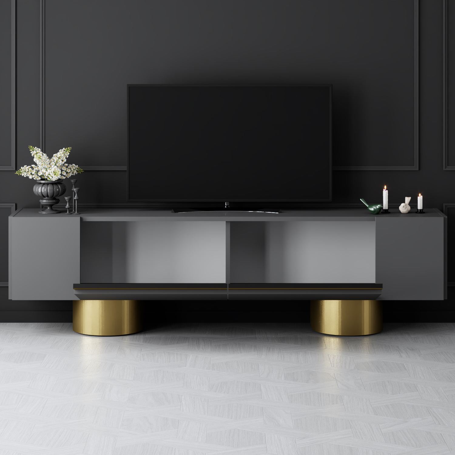TV cabinet Anthracite Bohem 180x50x30 - Golden Frame