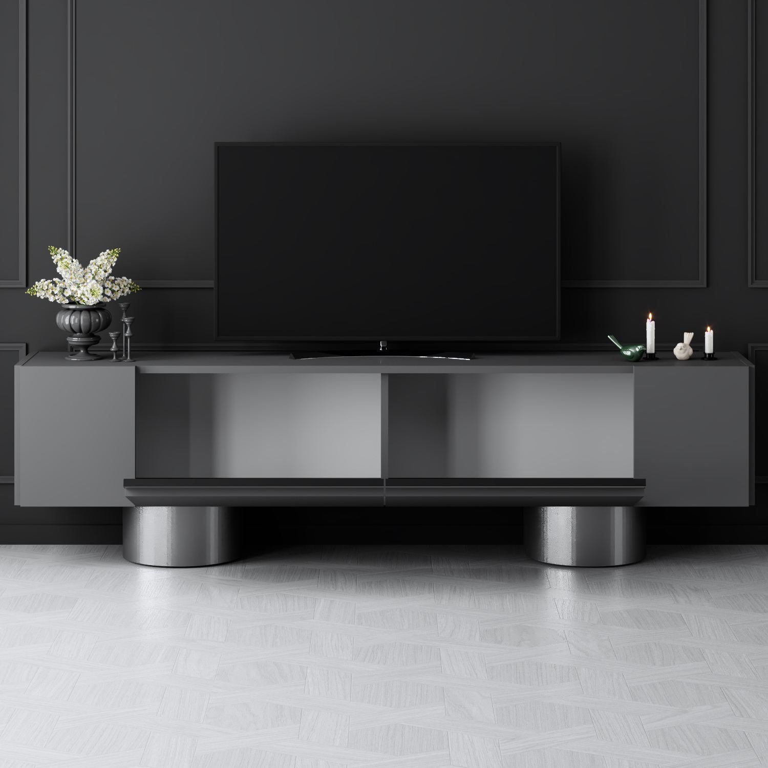 TV cabinet Anthracite Bohem 180x50x30 - Silver frame