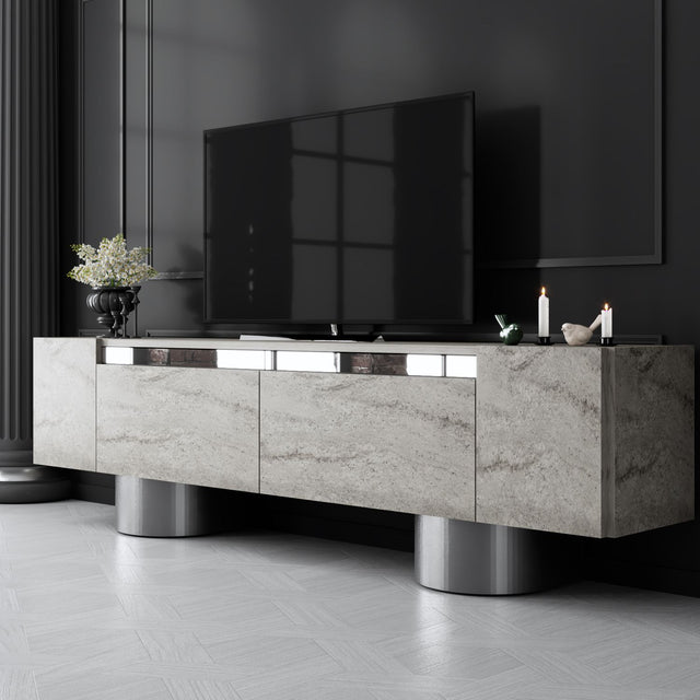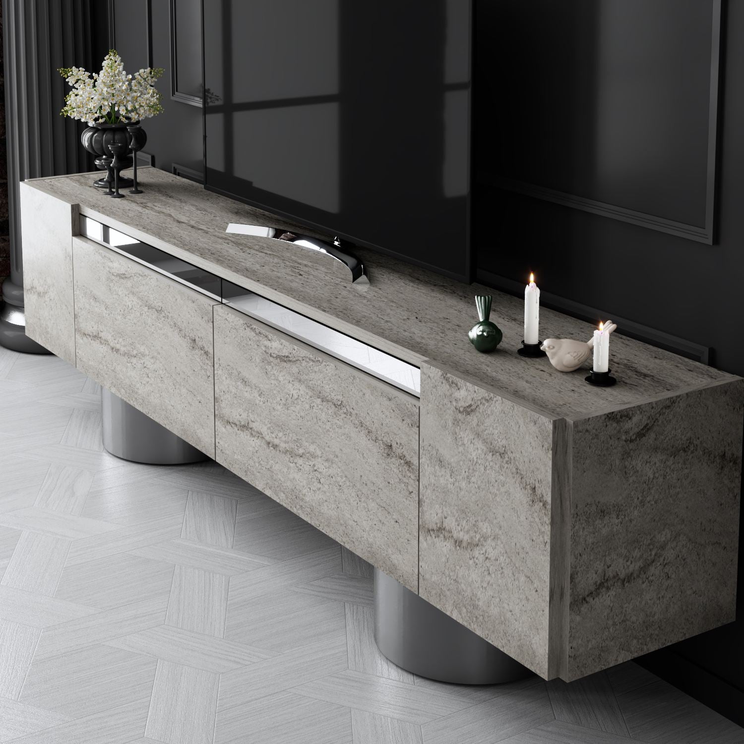 TV cabinet Travertine Bohem 180x50x30 - Silver frame