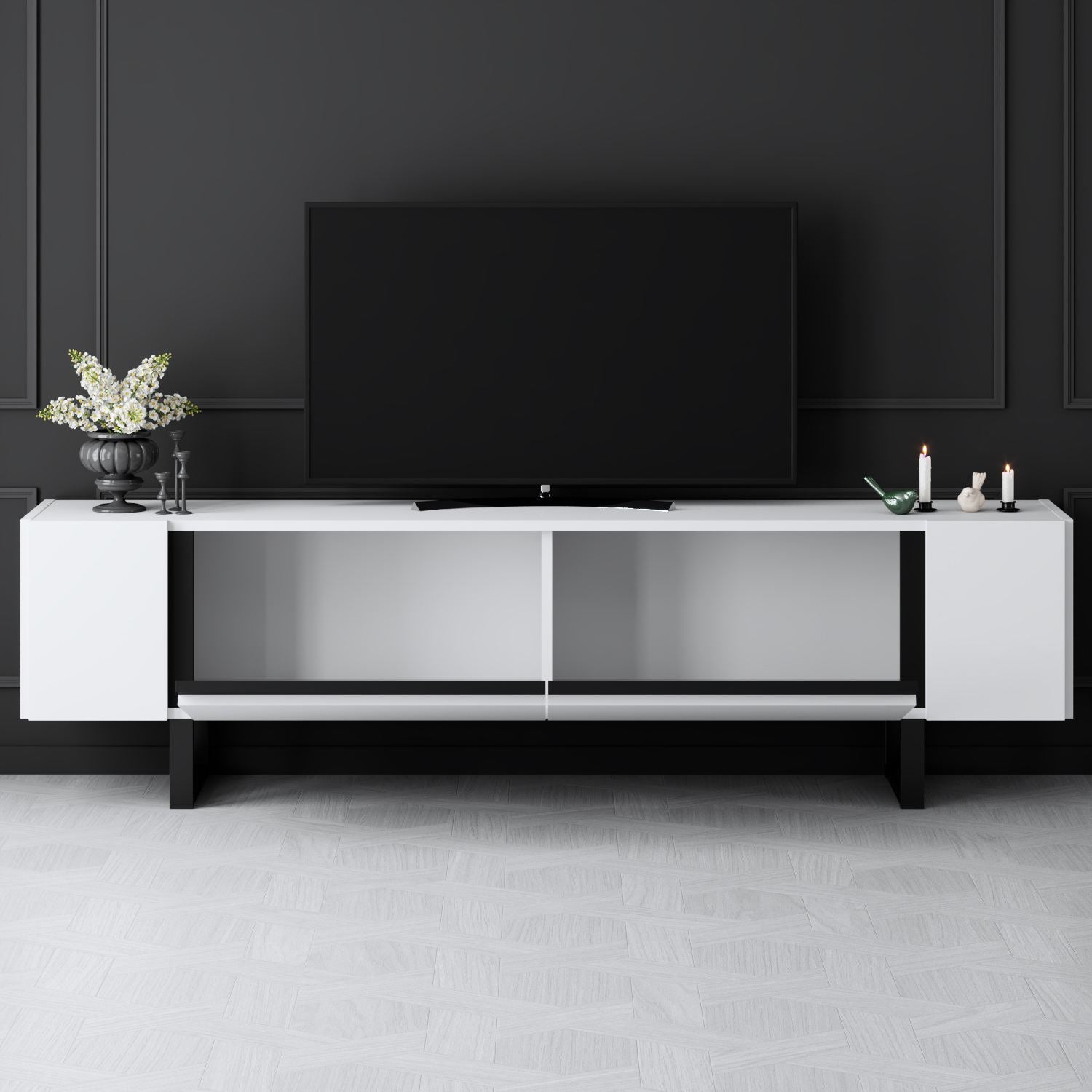TV Cabinet White Yildiz 180x50x30 - Black Frame