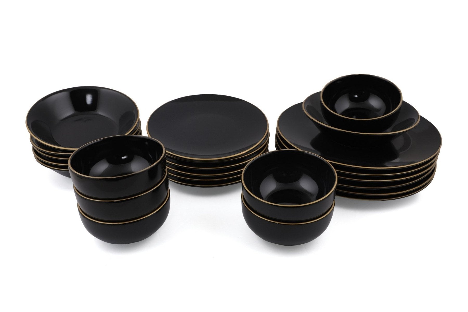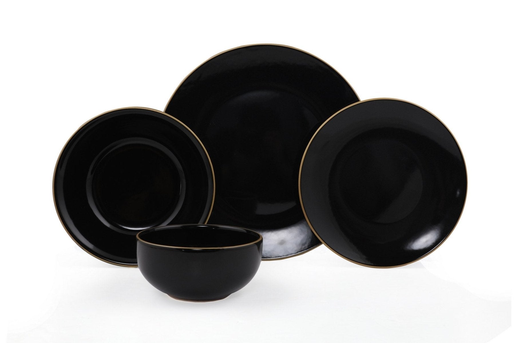 Servies set keramiek - 24 delig - Zwart met goud - Blackster