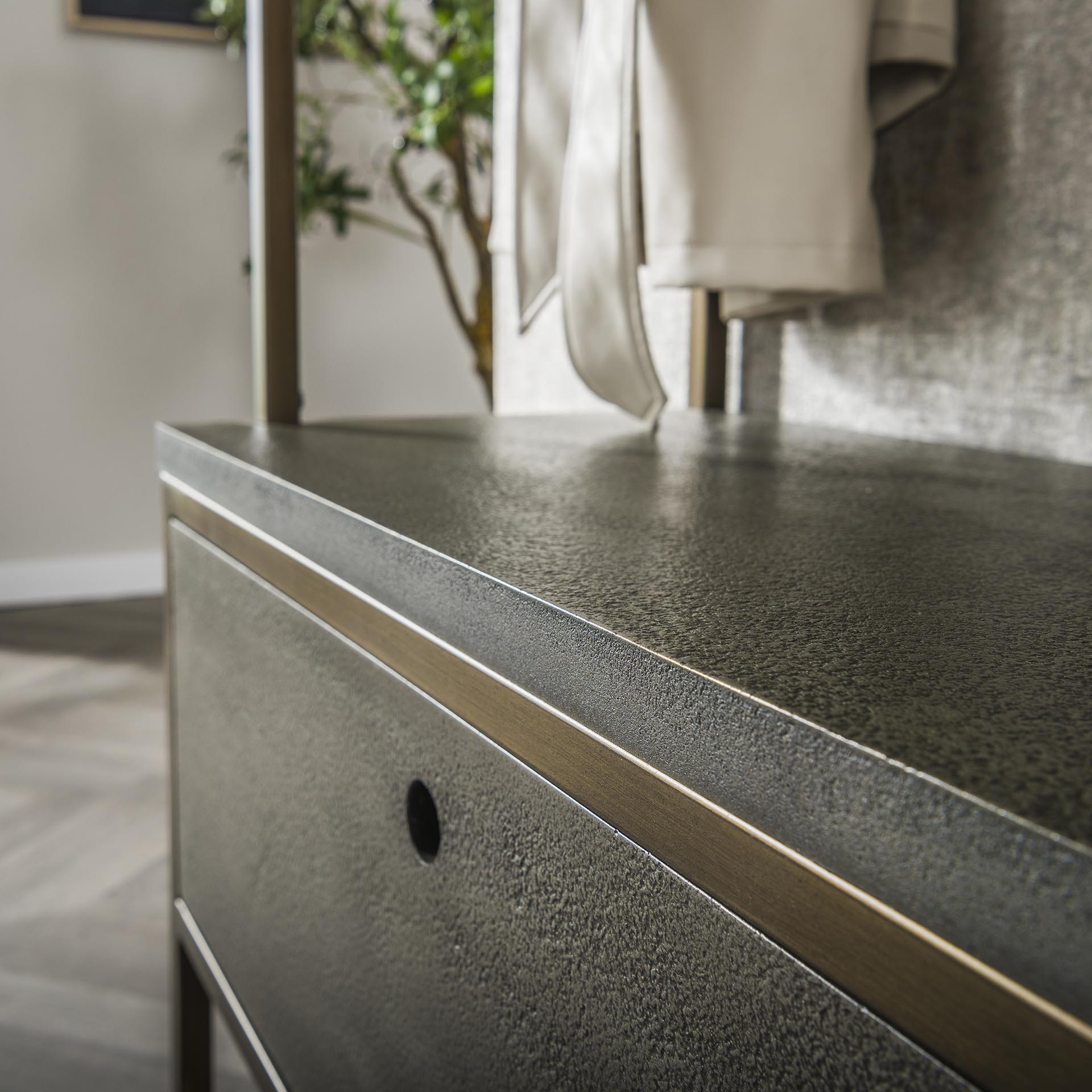With no less than 8 hooks and a sturdy rod, both executed in an elegant brass antique finish, Ferre offers more than enough space for all your jackets, bags and accessories. In addition, this wardrobe furniture also has a handy drawer, ideal for neatly storing all your smaller items such as keys or gloves.