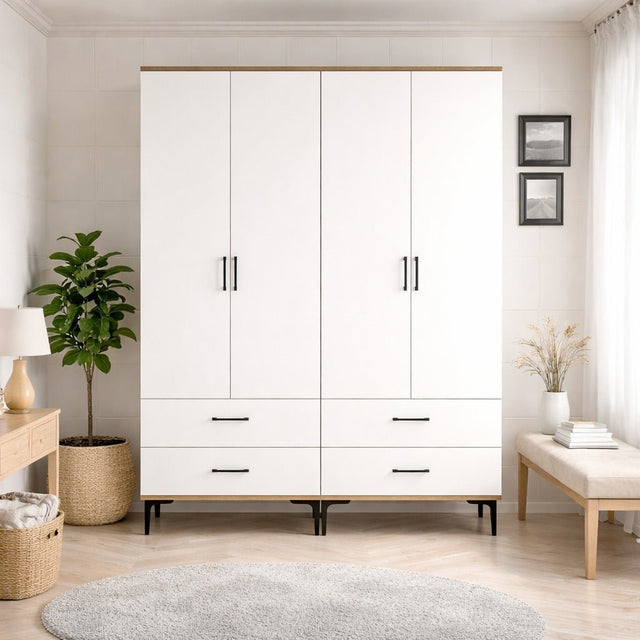 With a width of 160 cm, a height of 47.5 cm, and a depth of 201.4 cm, our wardrobe offers generous storage space. With multiple shelves, drawers, and hanging rods, you can neatly arrange your clothes, shoes, and accessories, making your daily routine a breeze.